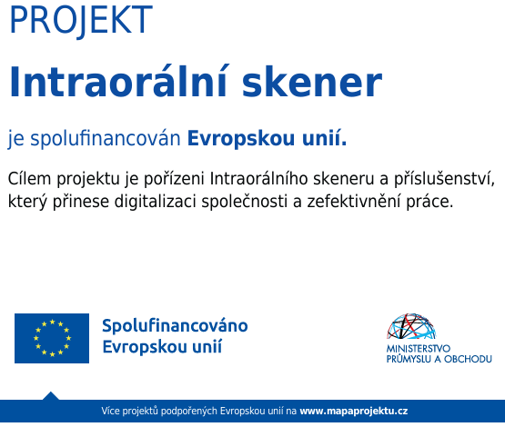 Je přístroj, kterým získáme přesný virtuální 3D model Vašeho chrupu pomocí skenování přímo v ústech. Výhodou je rychlost celého procesu, bez nutnosti nepříjemného otiskování konvenčními otiskovacími hmotami. Výsledný virtuální model lze následně analyzovat pomocí sofistikovaných počítačových programů. Toto zařízení bylo spolufinancováno Evropskou unií.